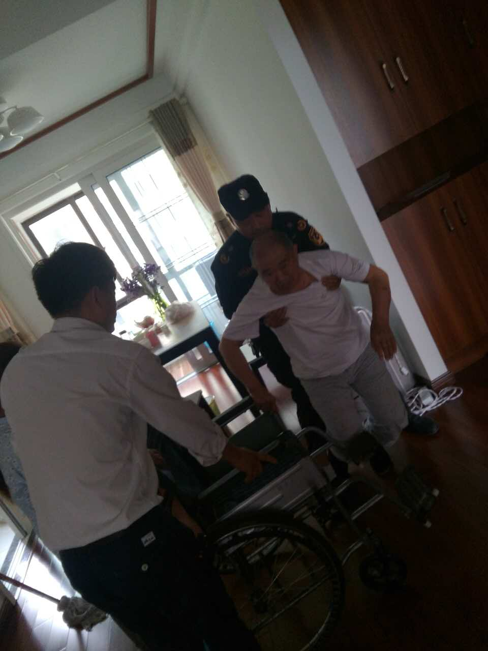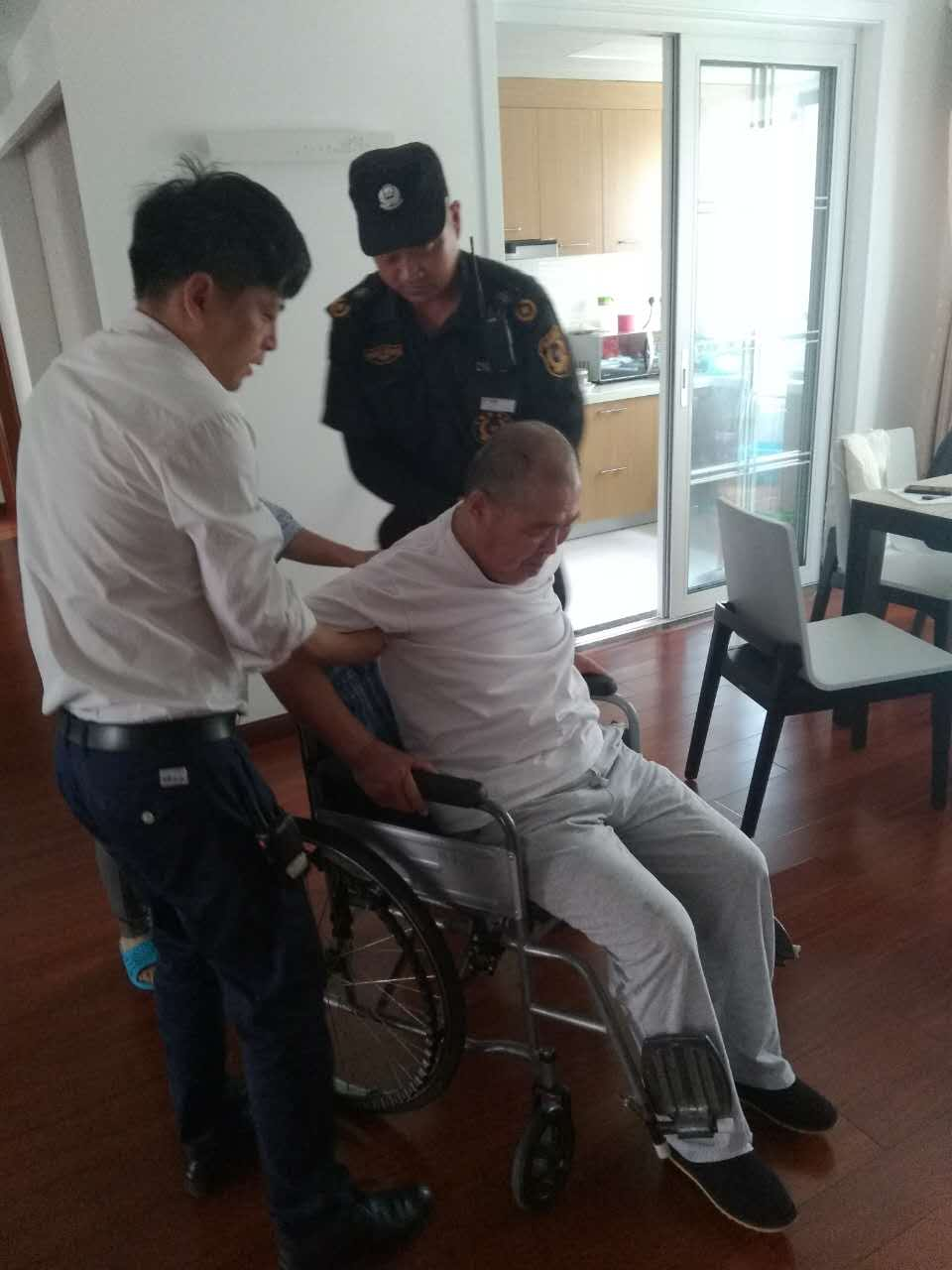 (業(yè)主家老人不小心摔倒,物業(yè)人員上門(mén)幫忙攙扶)